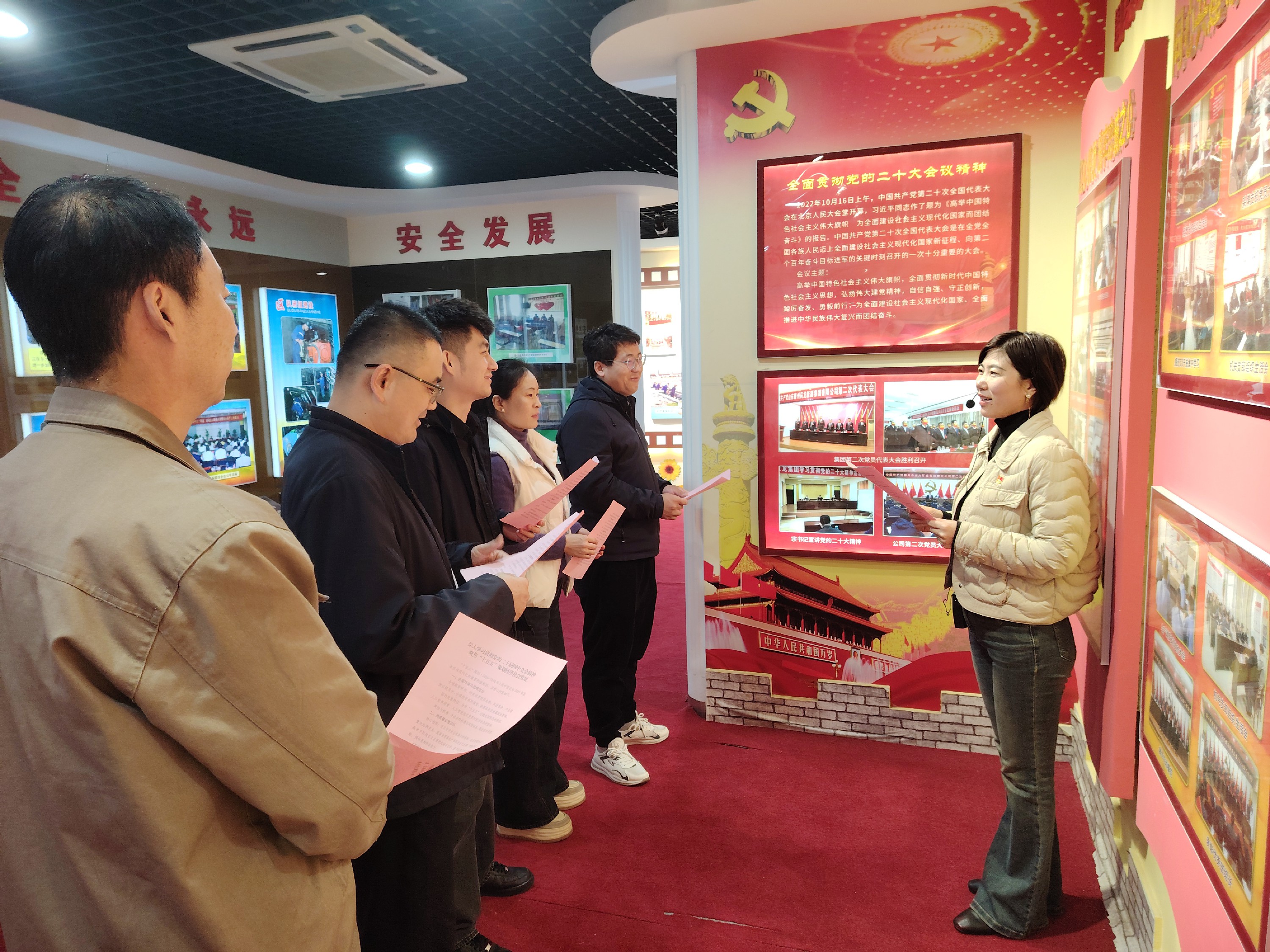 活動中,宣講團(tuán)隊(duì)通過“區(qū)隊(duì)微宣講、陣地小講堂”等形式,深入生產(chǎn)區(qū)隊(duì)、工作車間、黨群連心茶座以及副井井口等宣傳陣地,分發(fā)宣傳彩頁,向廣大干部職工講解全會精神,確保會議精神直達(dá)一線、深入人心。